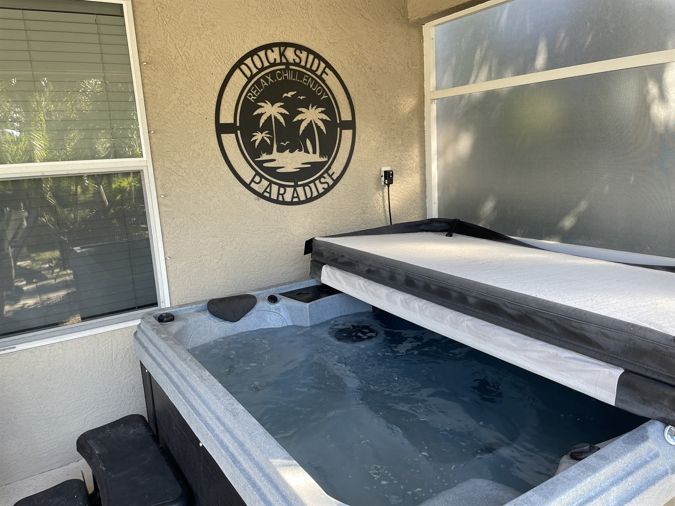 The property includes 2 tandem kayaks for guests to launch into the canal from the private backyard floating dock. Guests also have access to a boat dock and lift that can accommodate boats up to 26 feet, with additional sea wall parking for extra boats or jet skis.